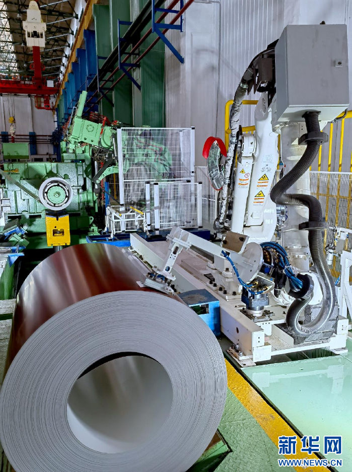 圖為鞍鋼股份冷軋廠彩涂分廠尾部噴號機(jī)器人。新華網(wǎng)發(fā)(受訪單位供圖)